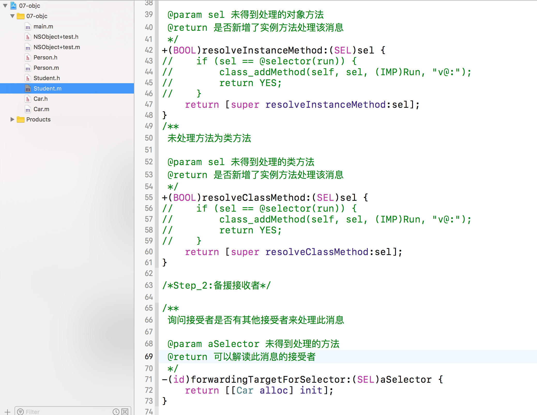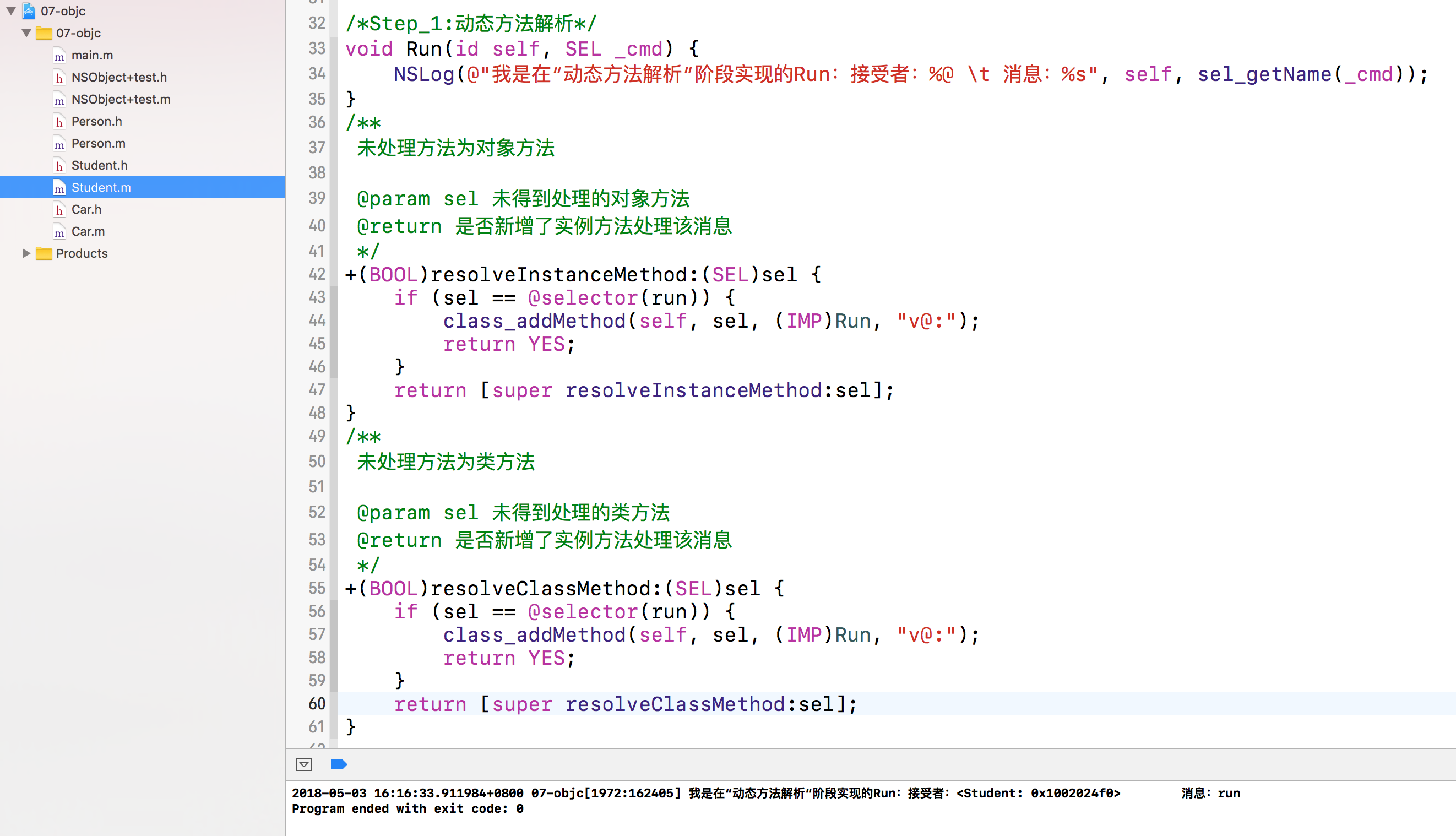 1 | +(BOOL)resolveInstanceMethod: (SEL)selector //方法类型为对象方法 |