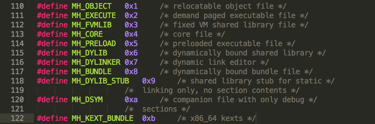 - MH_OBJECT:目标文件(.o)、静态库文件(.a)
