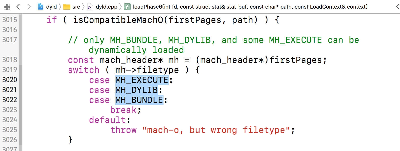 - MH_DYLINKER:动态链接编辑器(/usr/lib/dyld)