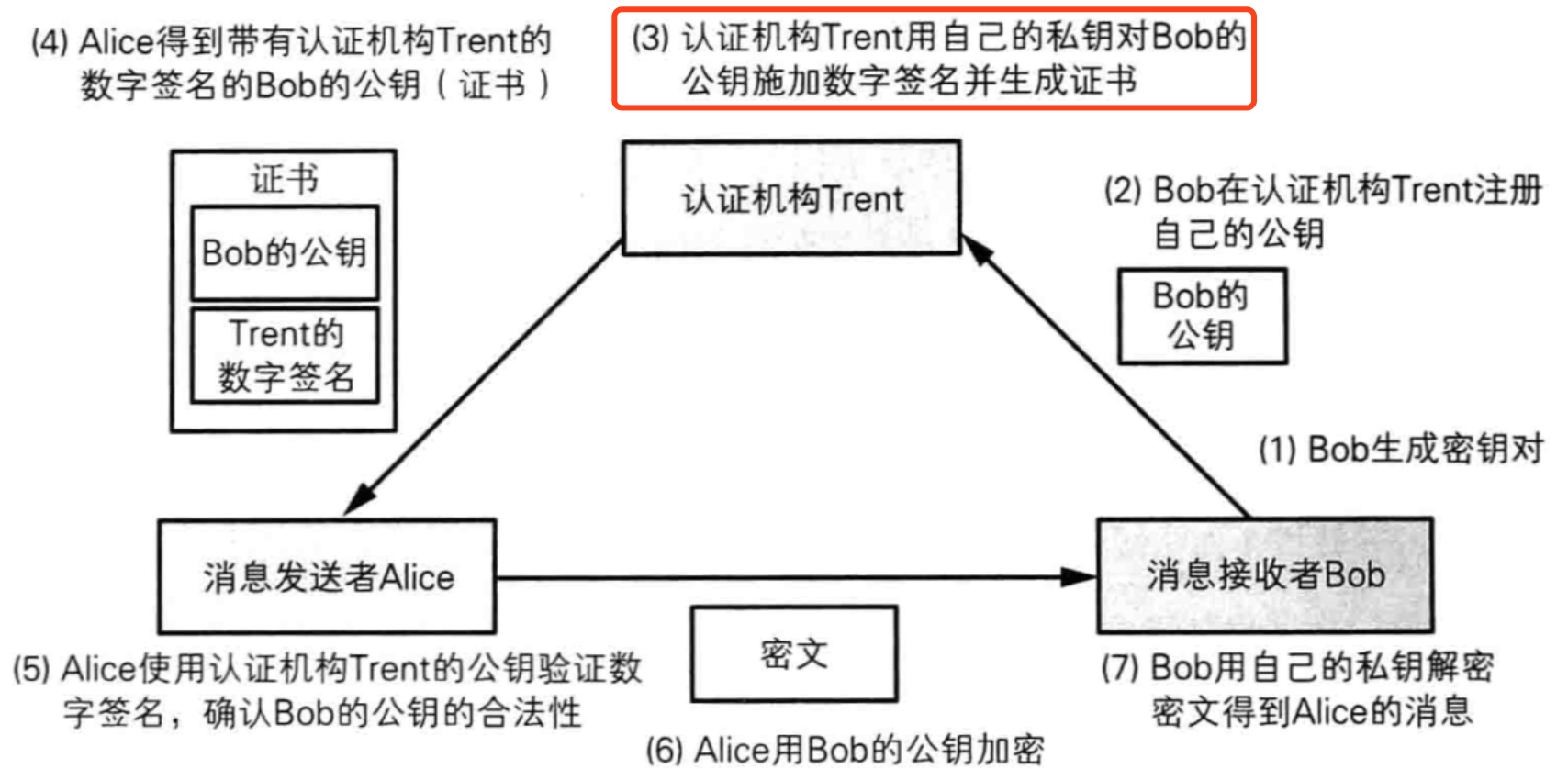 在验证签名之前,需要验证公钥的合法性。在这个环节中, 证书(certs)却可以很好的胜任验证公钥合法性的任务。一些官方的“证书颁发机构”(Certificate Authority,CA)使用其自己的私钥对要传输信息进行二次数字签名生成证书,证书里面就包括对象的公钥、对象信息、证书有效期、证书颁发者及其它扩展信息。现在使用的大部分证书都是 X.509 v3 证书格式。